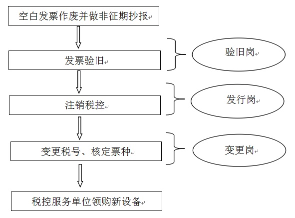 (1)稅控服務(wù)單位處領(lǐng)取升級流轉(zhuǎn)單,根據(jù)流轉(zhuǎn)單并到相應(yīng)窗口辦理發(fā)票繳銷驗舊。